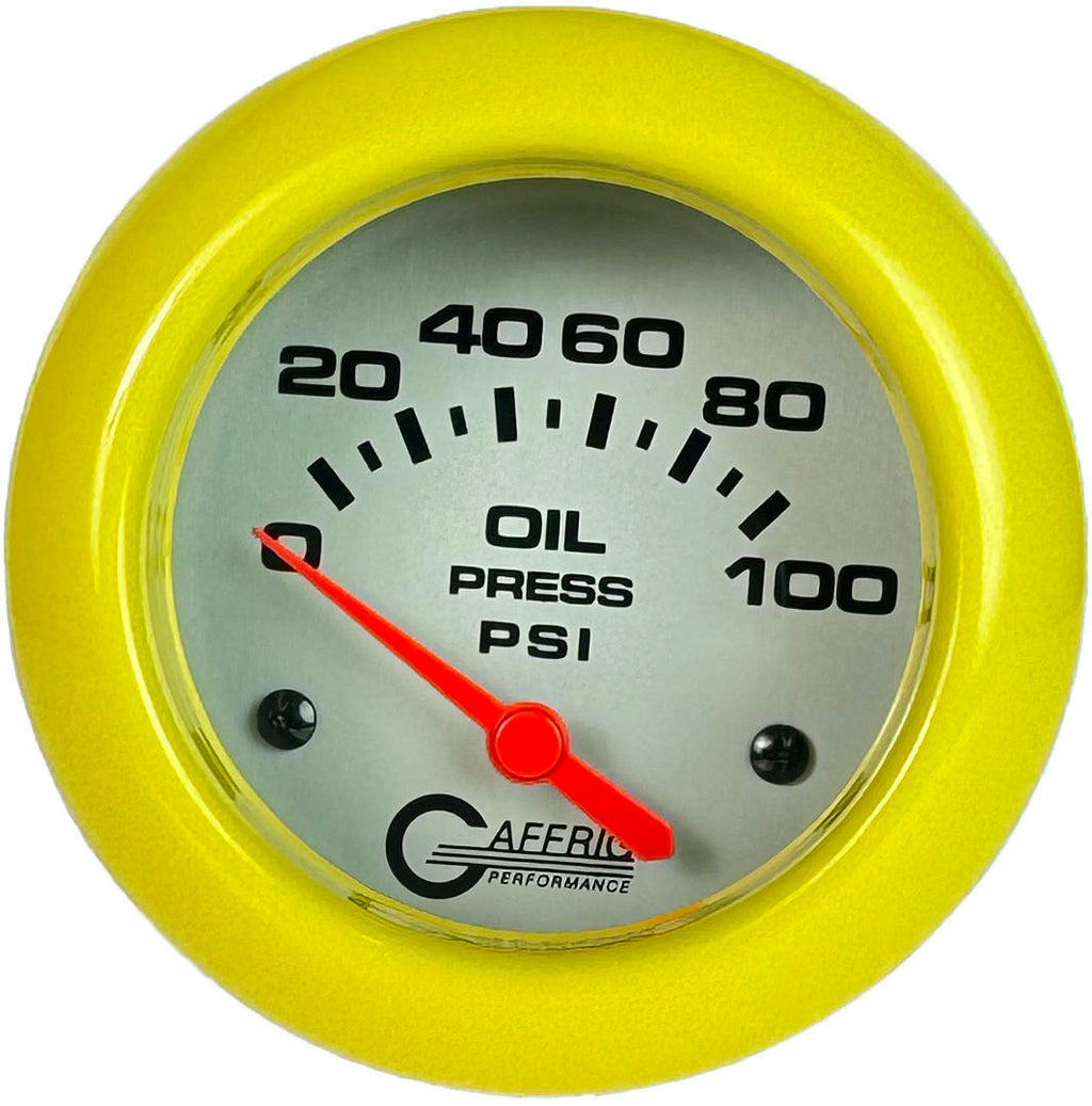 Monitor your engine’s vital oil pressure with Gaffrig Performance’s 2 5/8 Inch Racing Series Electric Oil Pressure Gauge (0-100 PSI). Designed for high-performance applications, this precision gauge provides real-time, accurate oil pressure readings to ensure your engine operates at peak efficiency. The sleek, race-inspired design features a clear, easy-to-read display, making it an essential tool for maintaining engine health during intense driving conditions. Built for durability and reliability, this electric gauge is engineered to perform in the toughest environments, offering the critical data you need to protect your engine and push performance to the limit.