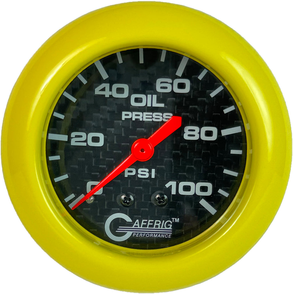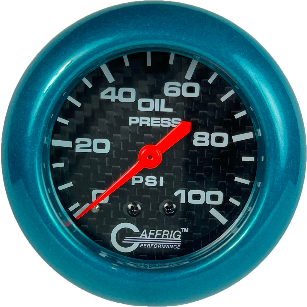 GAFFRIG PART #12011 2 5/8 INCH MECHANICAL OIL PRESSURE MARINE BOAT GAUGE 0-100 PSI CARBON FIBER