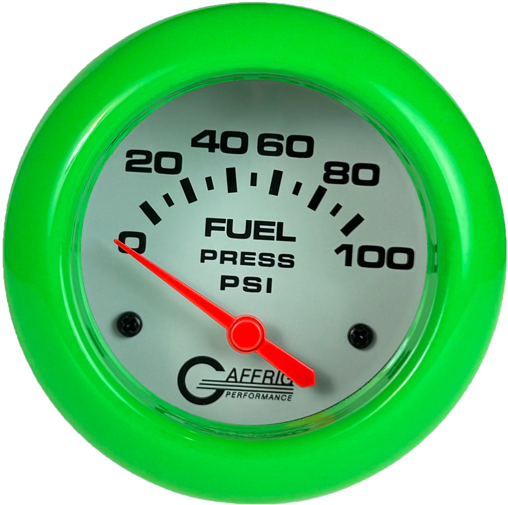 Keep your fuel system in check with Gaffrig Performance’s 2 5/8 Inch Racing Series Electric Fuel Pressure Gauge (0-100 PSI). Designed for precision and performance, this gauge provides accurate pressure readings to help maintain consistent fuel delivery during high-demand situations. Ideal for racing environments, its rugged construction ensures durability under extreme conditions, while the clear, easy-to-read display keeps critical data at your fingertips. Elevate your performance setup with a gauge built to deliver reliability and control when you need it most.