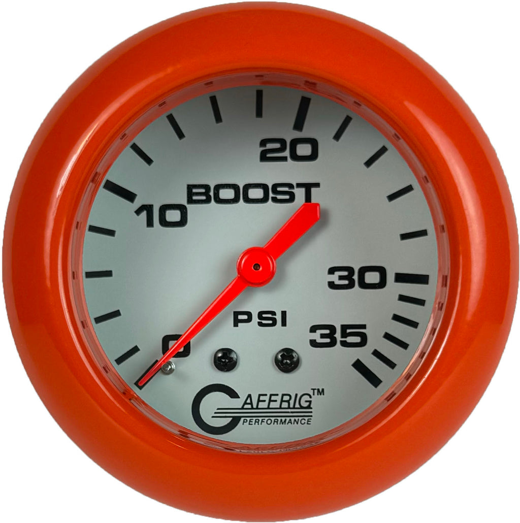 Maximize your engine’s performance with Gaffrig Performance’s 2 5/8 Inch Racing Series Mechanical Boost Gauge (0-35 PSI). Designed for precision and durability, this high-performance gauge provides accurate, real-time boost pressure readings, helping you monitor and optimize turbo or supercharged engine performance. The mechanical design ensures reliability without the need for electrical connections, while the sleek, race-inspired face delivers clear, easy-to-read data. Built to endure the toughest conditions, this boost gauge is a must-have for enthusiasts who demand accuracy and performance under extreme driving conditions.