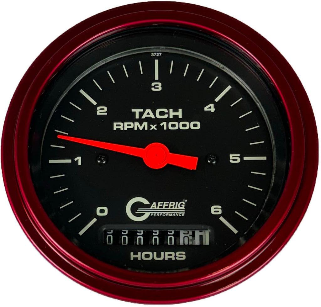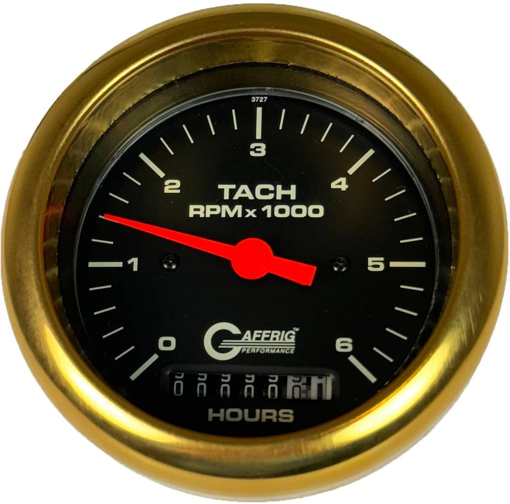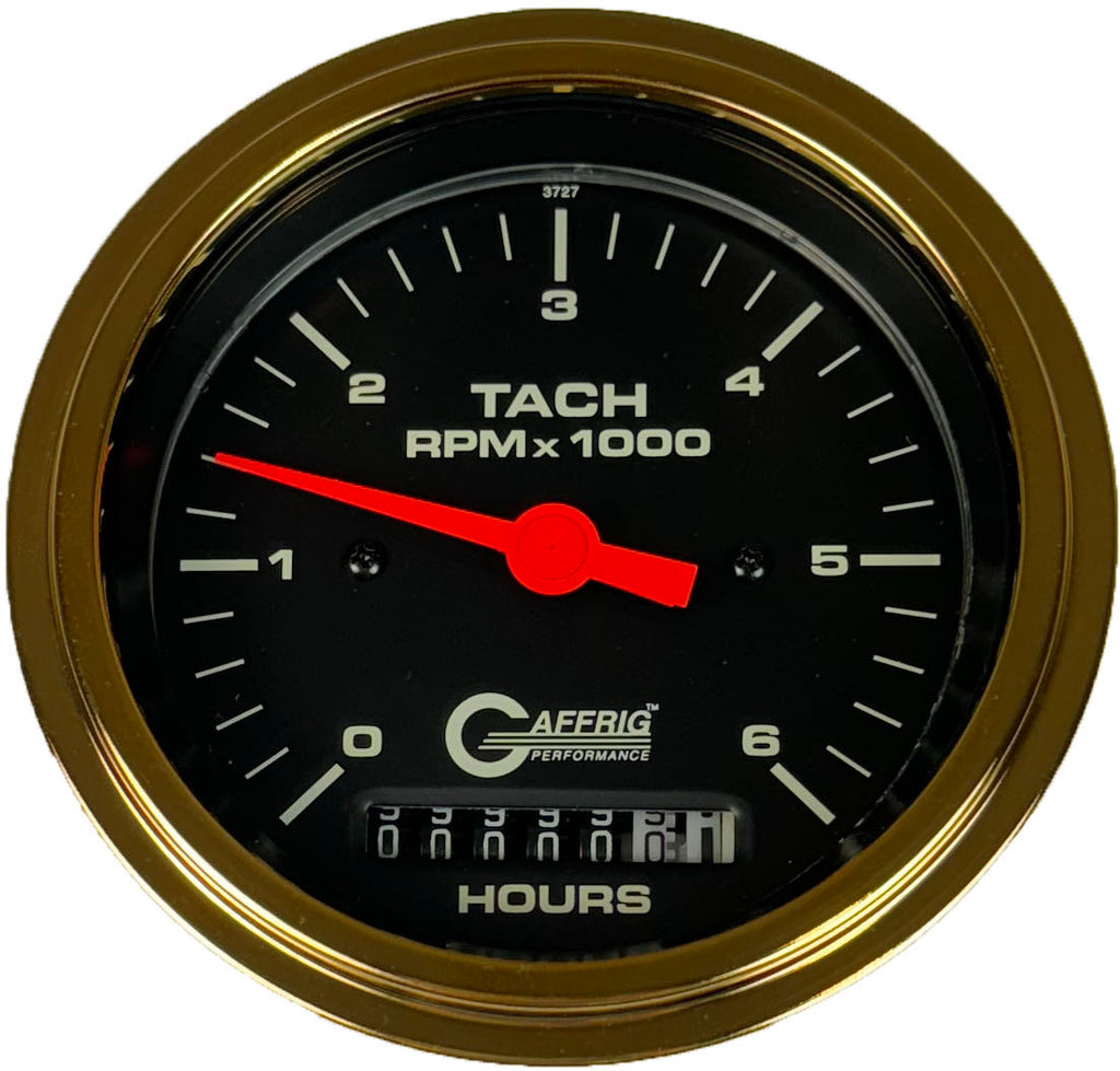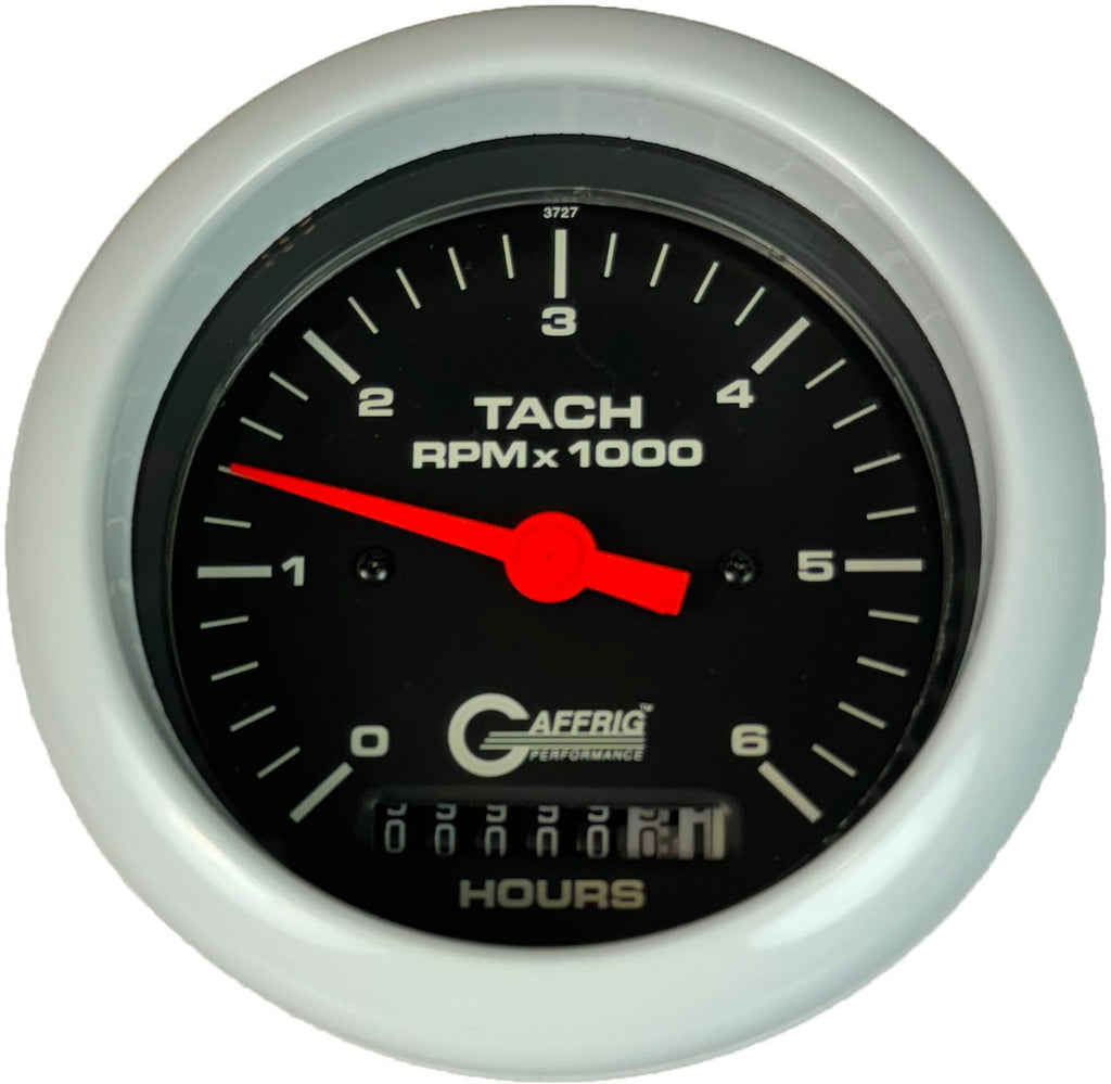 GAFFRIG PART #4258 3 3/8 INCH ELECTRIC TACH/HOUR METER MARINE BOAT GAUGE 0-6000 RPM BLACK