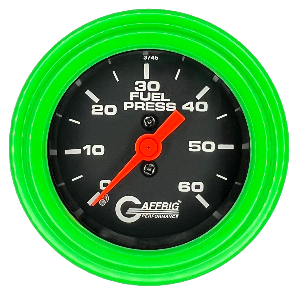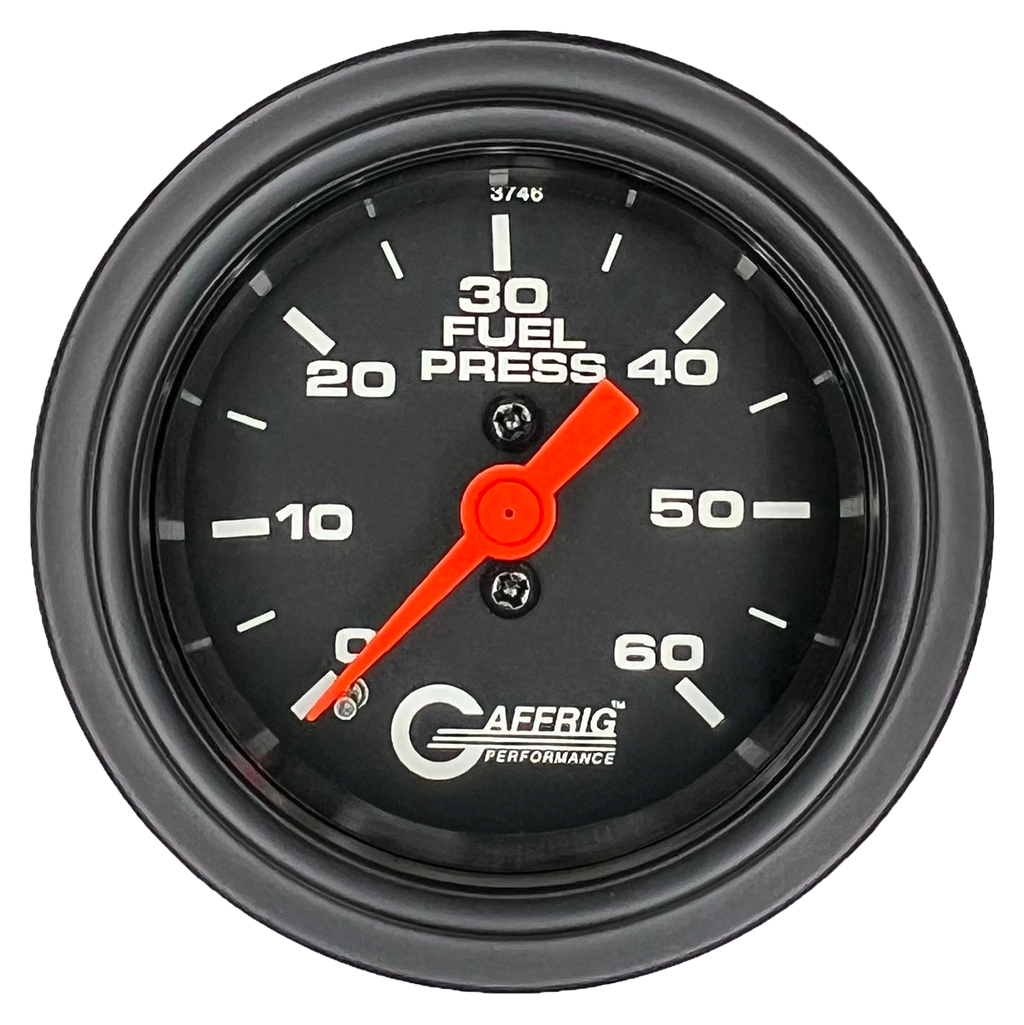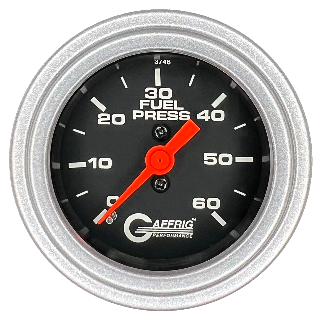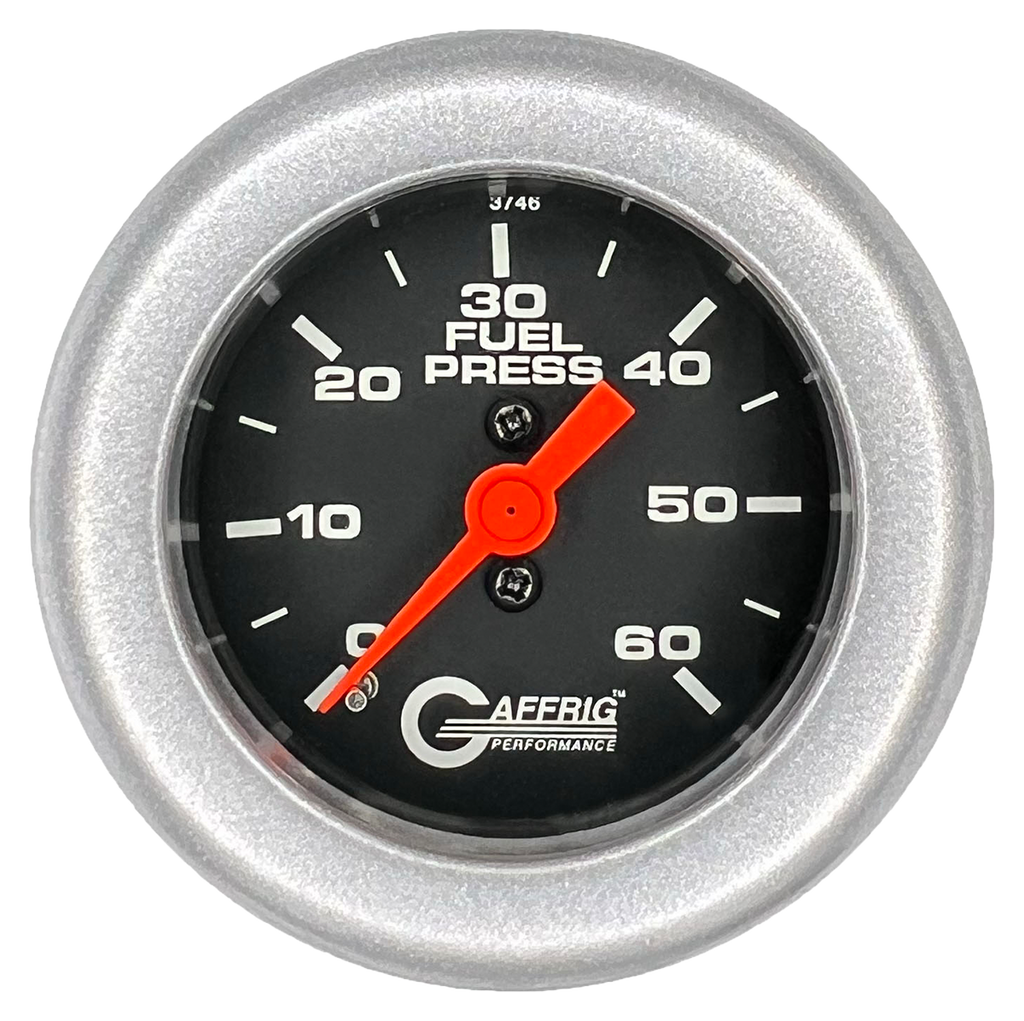 Monitor your fuel system with confidence using the Gaffrig Performance 2-Inch Mechanical Fuel Pressure Gauge. Engineered for high-pressure systems, this gauge delivers accurate readings from 0 to 60 PSI, making it ideal for fuel-injected engines and performance applications. Built with precision and durability in mind, this gauge ensures your engine gets the consistent fuel delivery it needs for peak performance and reliability.