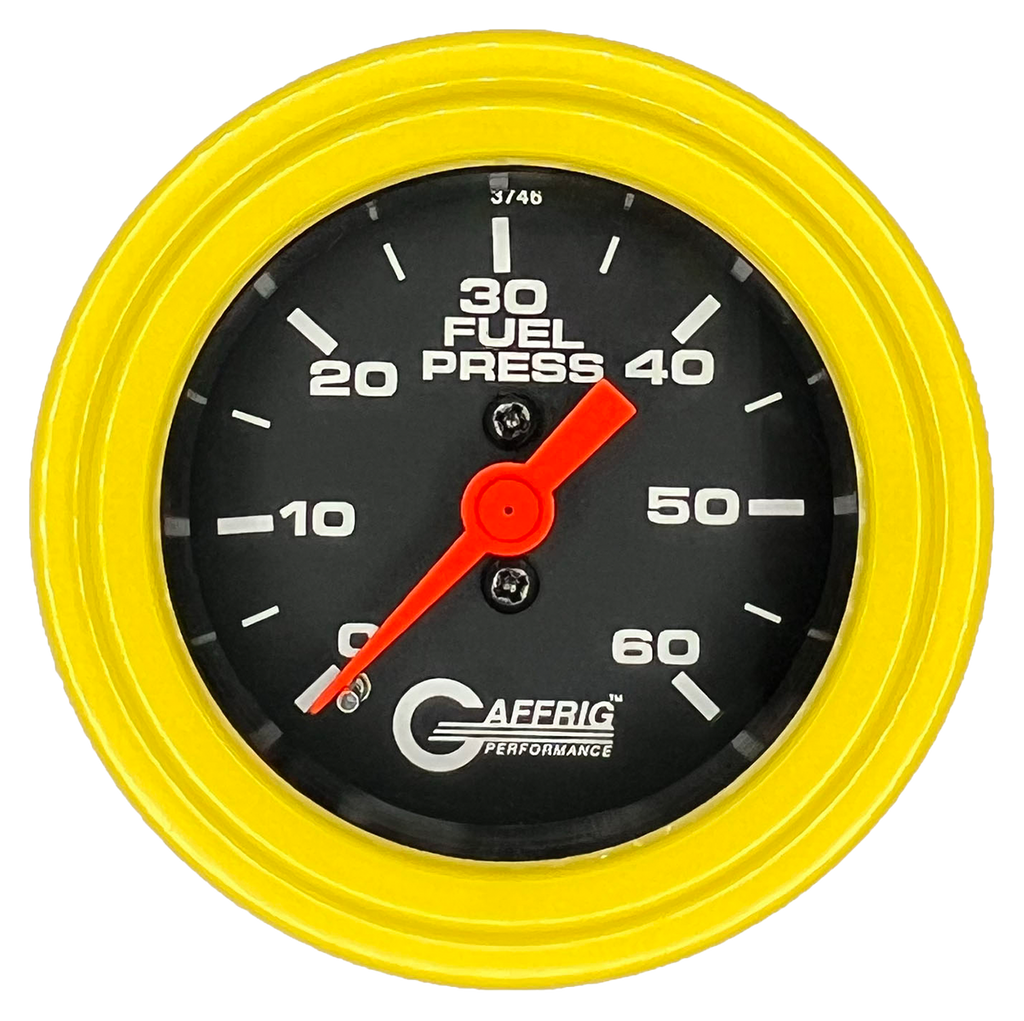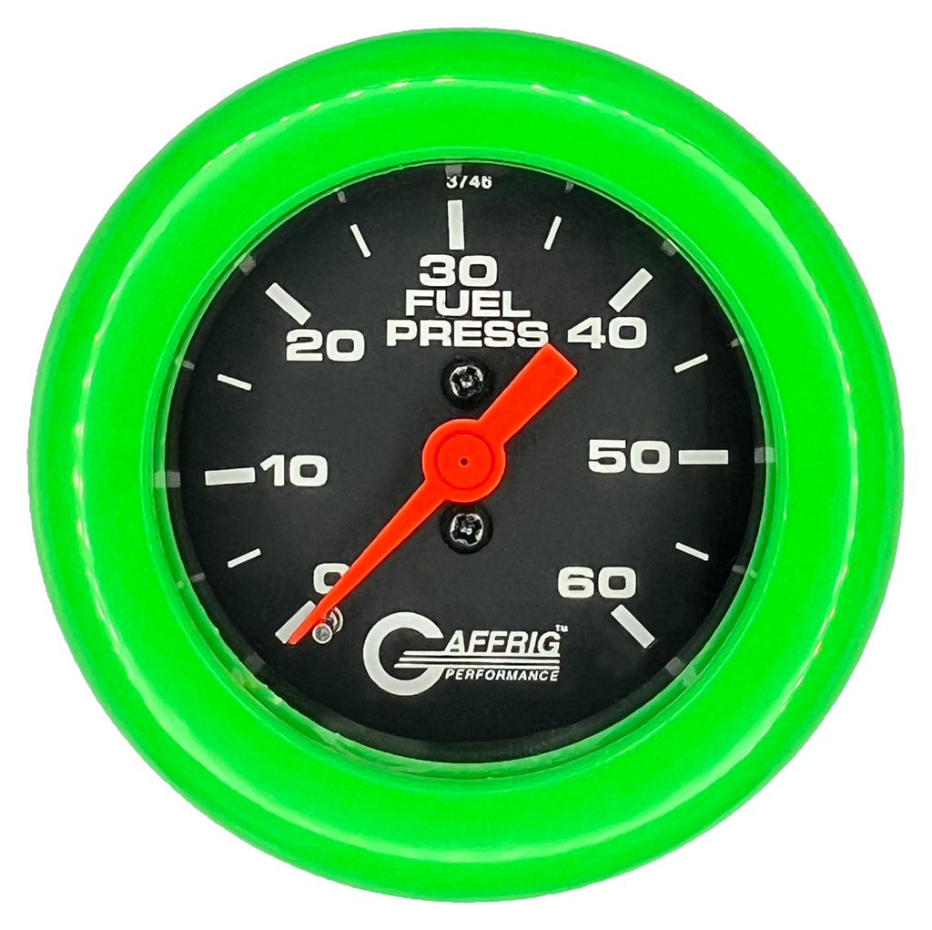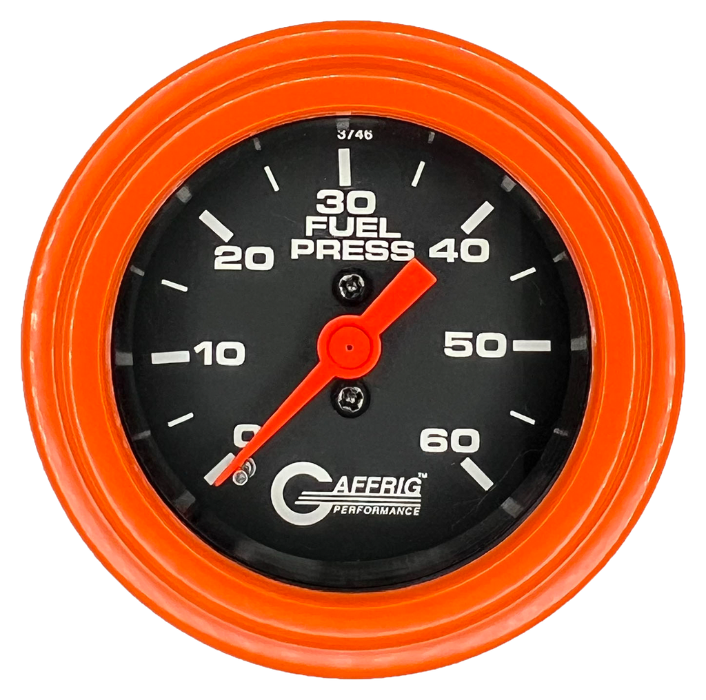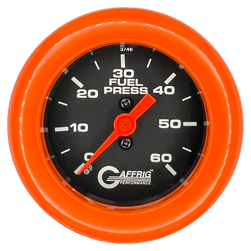 Monitor your fuel system with confidence using the Gaffrig Performance 2-Inch Mechanical Fuel Pressure Gauge. Engineered for high-pressure systems, this gauge delivers accurate readings from 0 to 60 PSI, making it ideal for fuel-injected engines and performance applications. Built with precision and durability in mind, this gauge ensures your engine gets the consistent fuel delivery it needs for peak performance and reliability.