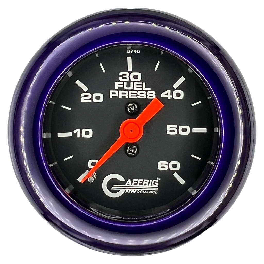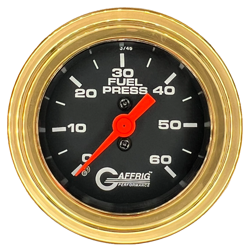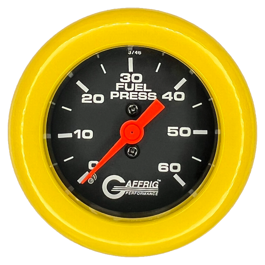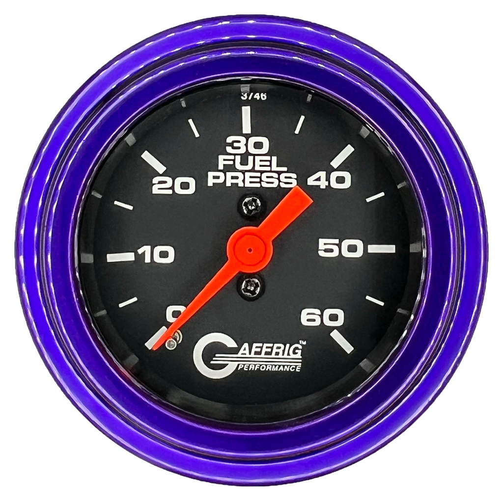 Monitor your fuel system with confidence using the Gaffrig Performance 2-Inch Mechanical Fuel Pressure Gauge. Engineered for high-pressure systems, this gauge delivers accurate readings from 0 to 60 PSI, making it ideal for fuel-injected engines and performance applications. Built with precision and durability in mind, this gauge ensures your engine gets the consistent fuel delivery it needs for peak performance and reliability.