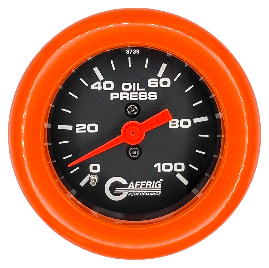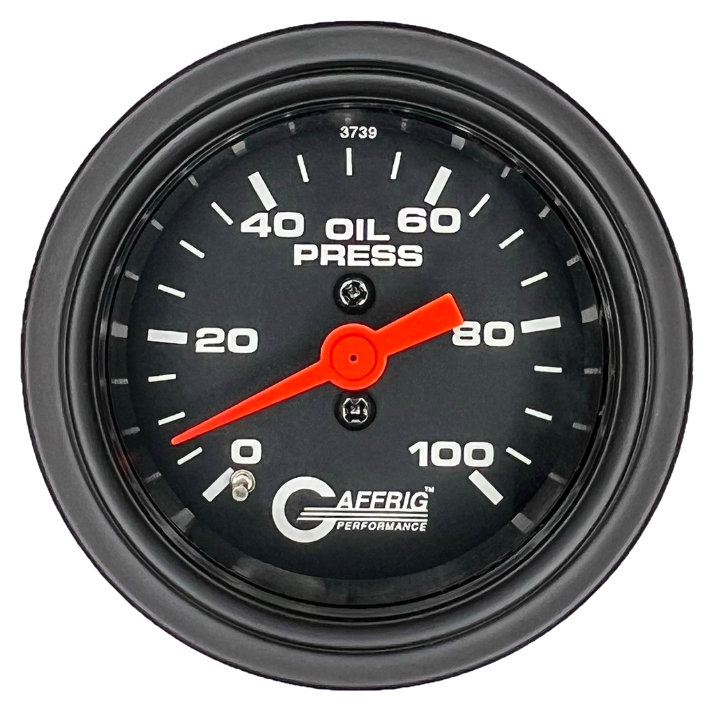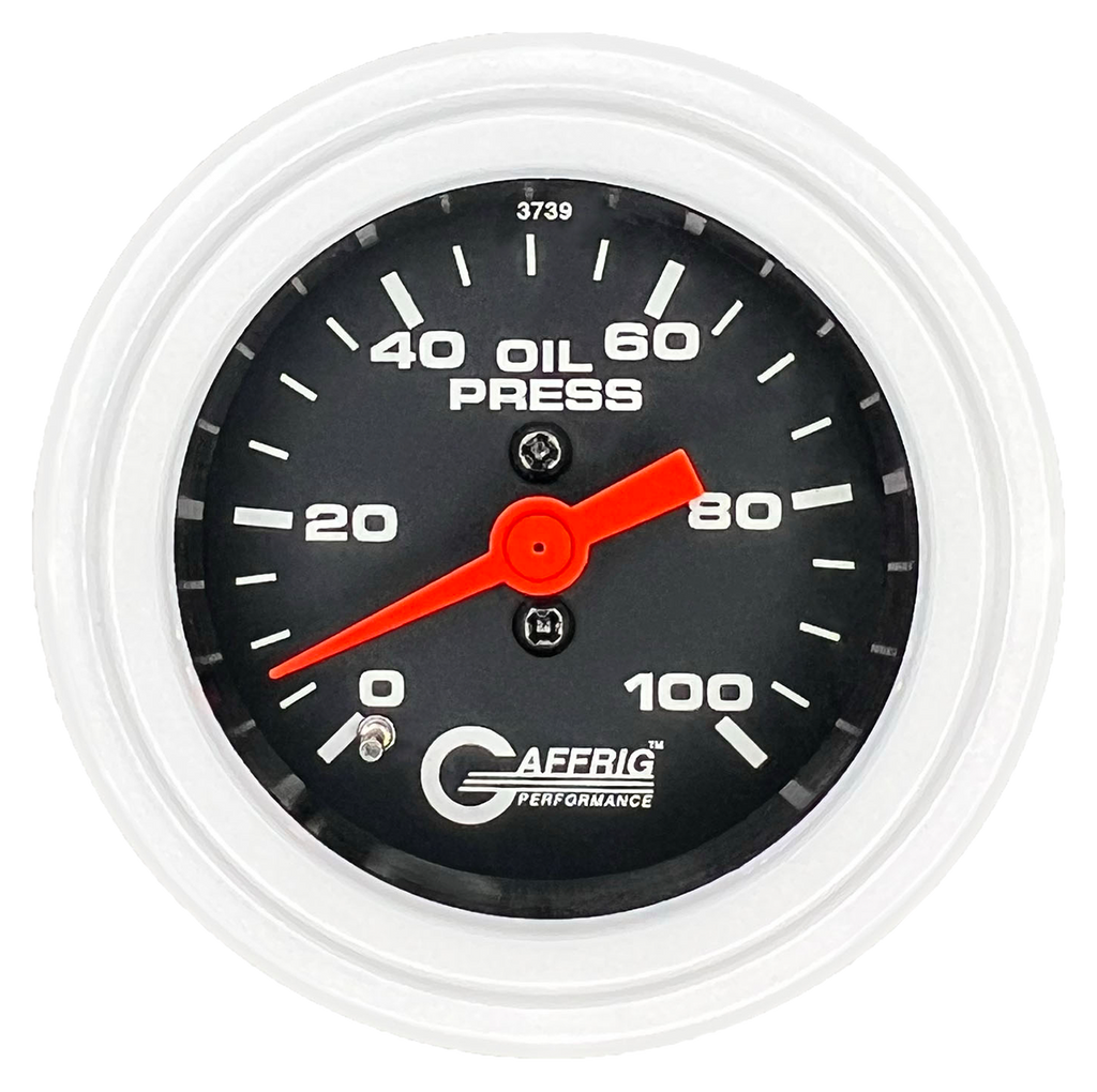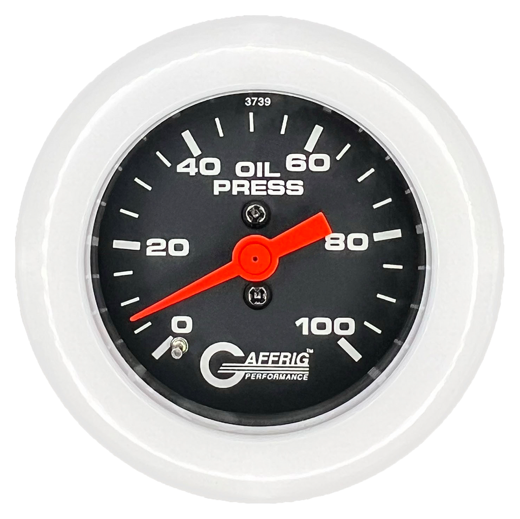 Ensure your engine stays protected and performs at its best with the Gaffrig Performance 2-Inch Mechanical Oil Pressure Gauge. Designed for accurate readings from 0 to 100 PSI, this gauge provides critical real-time feedback to monitor your engine’s lubrication system. Built for durability and precision, it’s an essential tool for maintaining optimal engine health, whether on the water, road, or track.