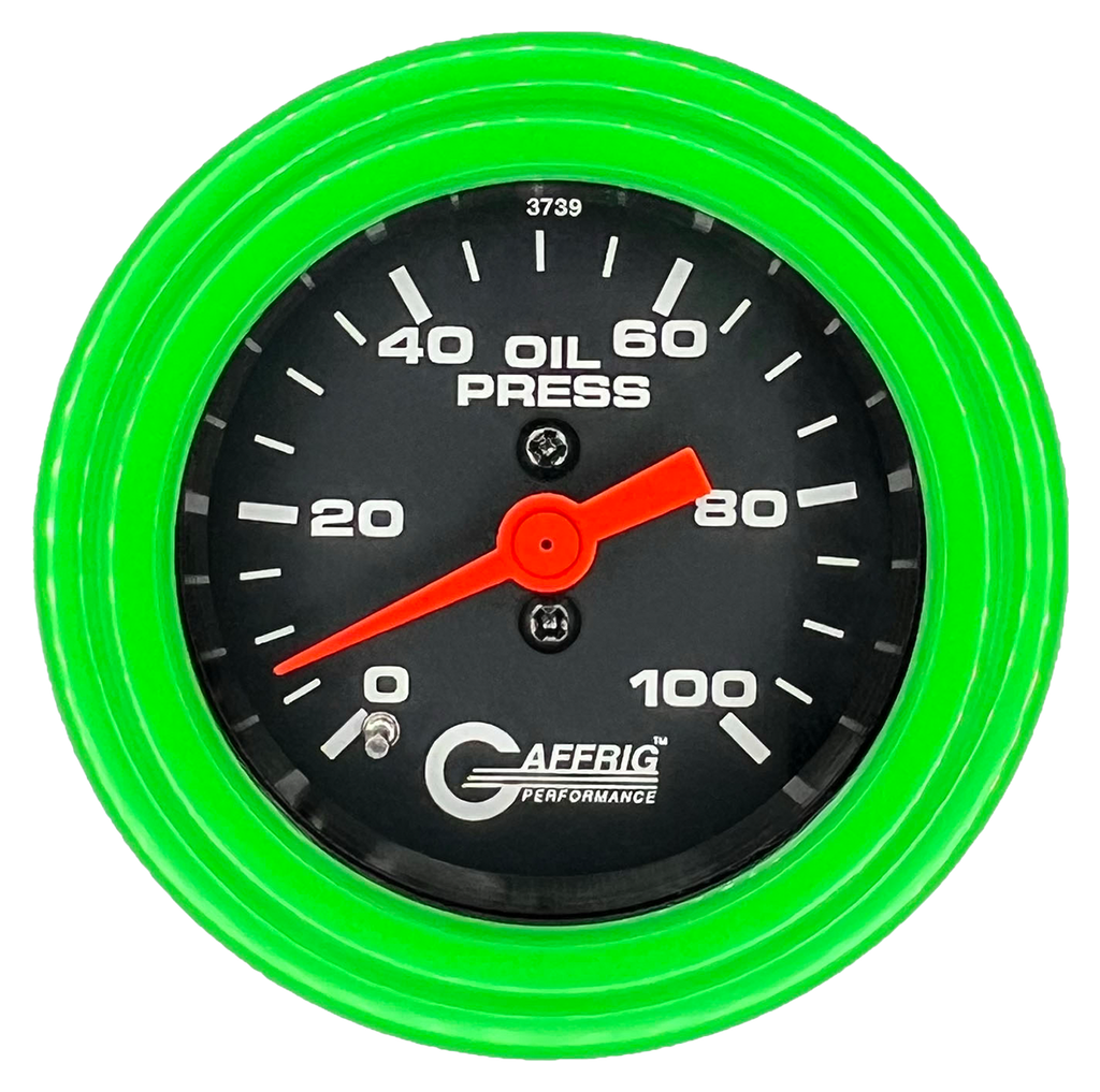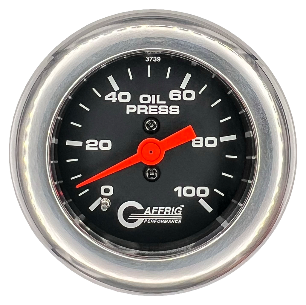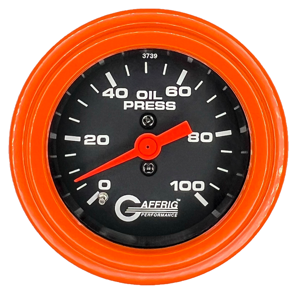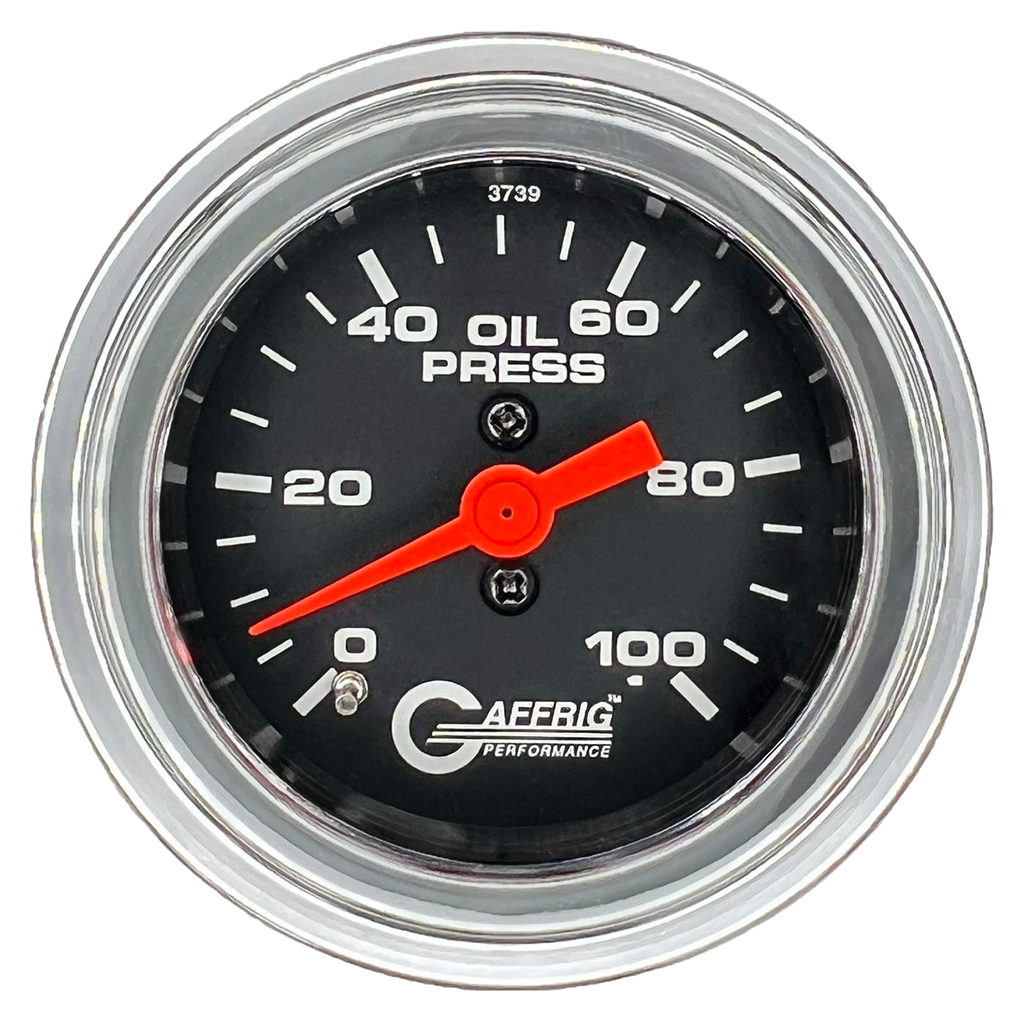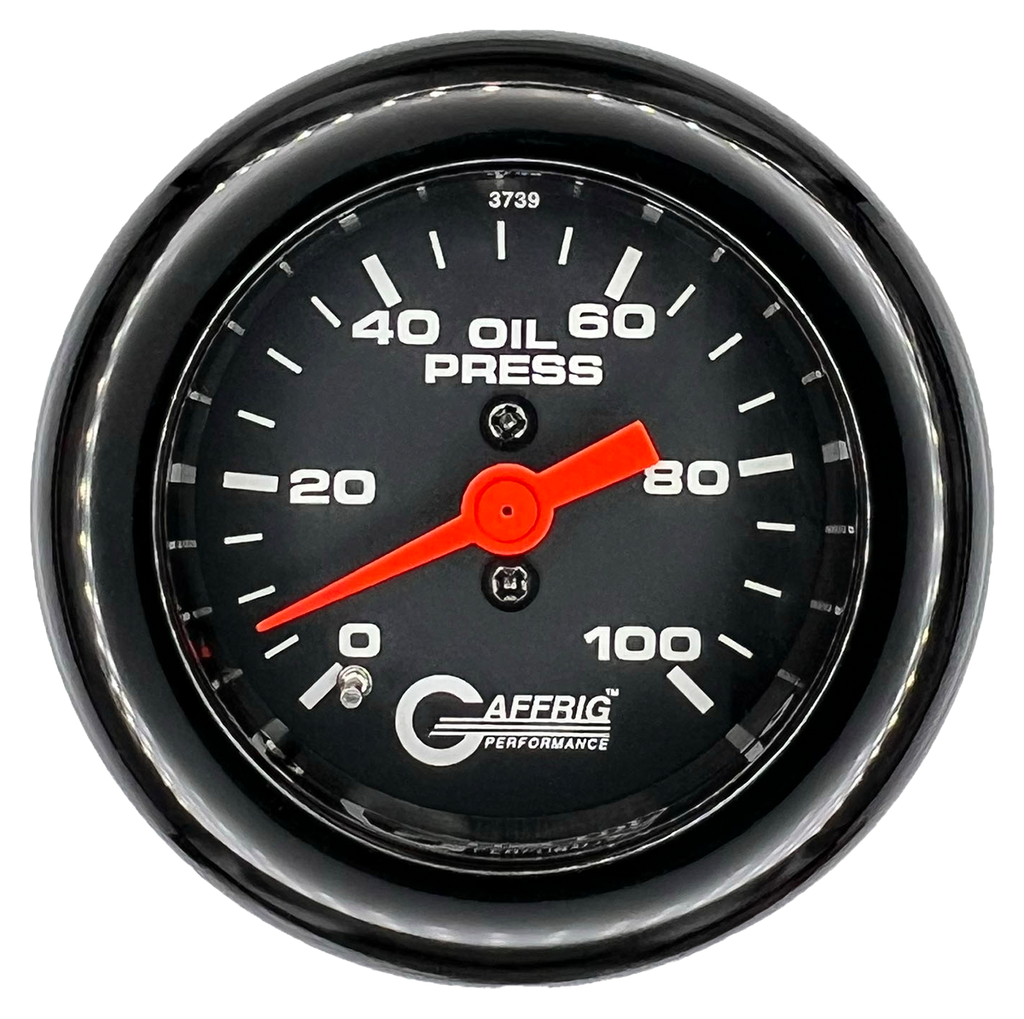 Ensure your engine stays protected and performs at its best with the Gaffrig Performance 2-Inch Mechanical Oil Pressure Gauge. Designed for accurate readings from 0 to 100 PSI, this gauge provides critical real-time feedback to monitor your engine’s lubrication system. Built for durability and precision, it’s an essential tool for maintaining optimal engine health, whether on the water, road, or track.