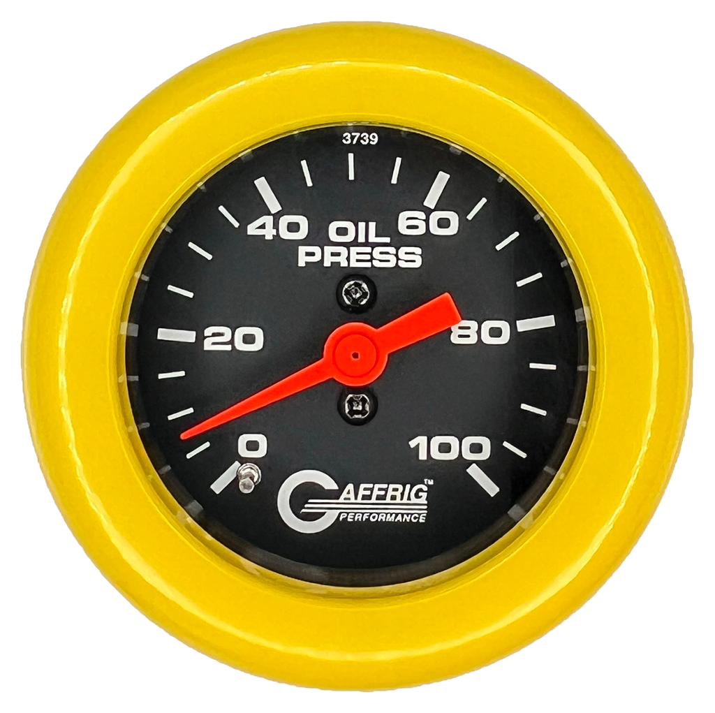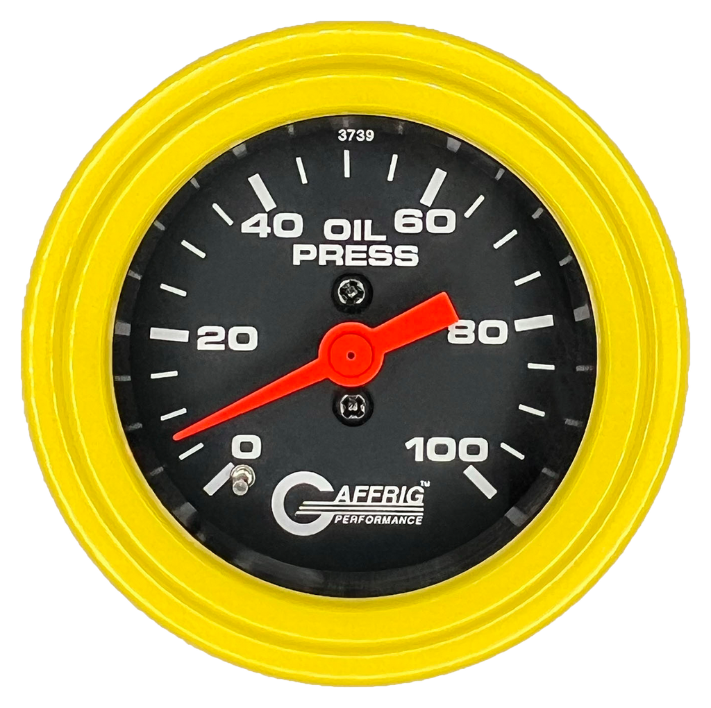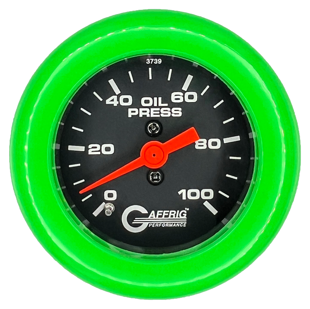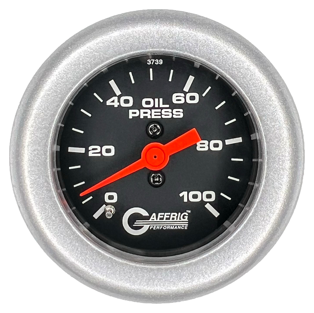 Ensure your engine stays protected and performs at its best with the Gaffrig Performance 2-Inch Mechanical Oil Pressure Gauge. Designed for accurate readings from 0 to 100 PSI, this gauge provides critical real-time feedback to monitor your engine’s lubrication system. Built for durability and precision, it’s an essential tool for maintaining optimal engine health, whether on the water, road, or track.