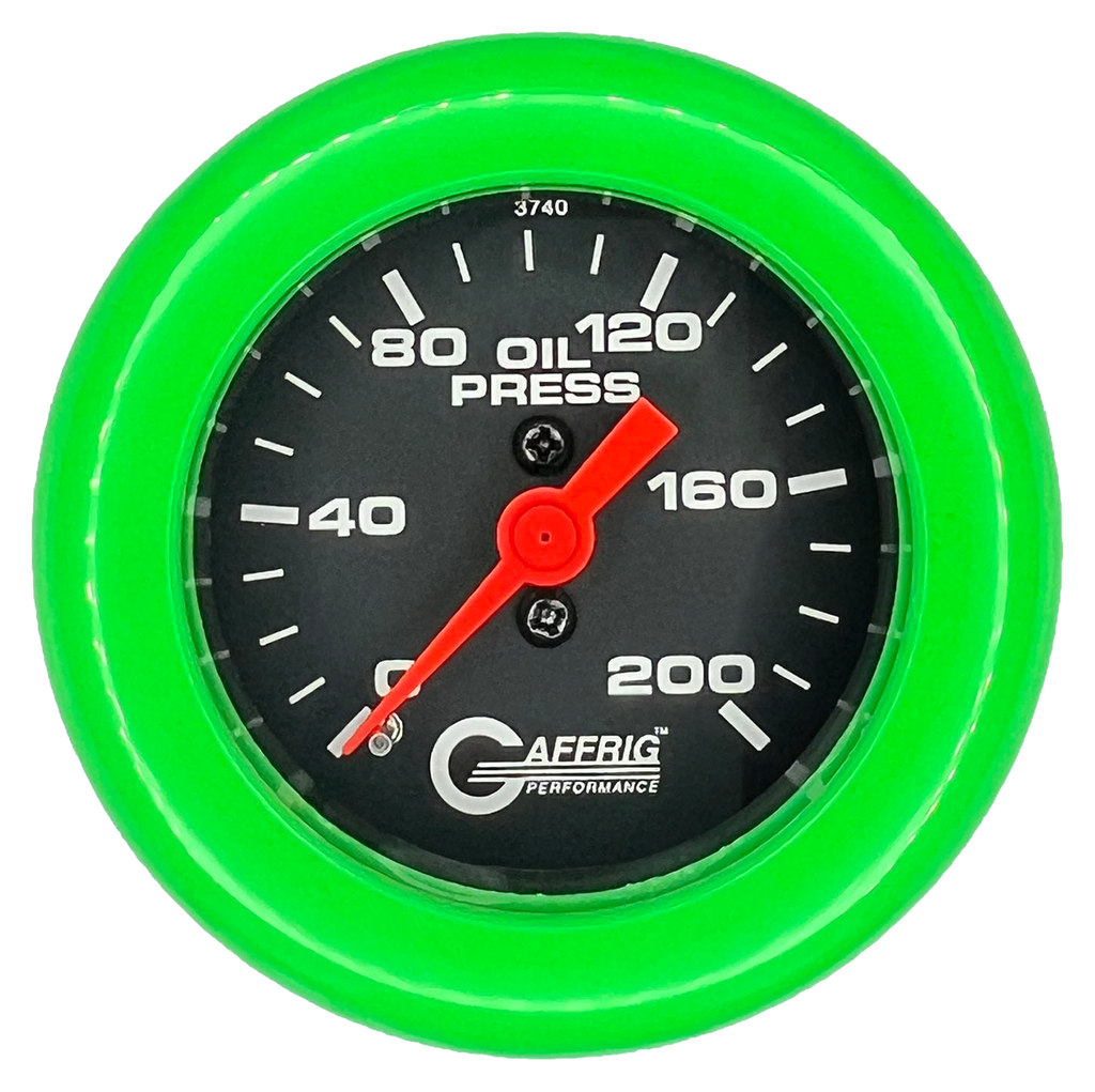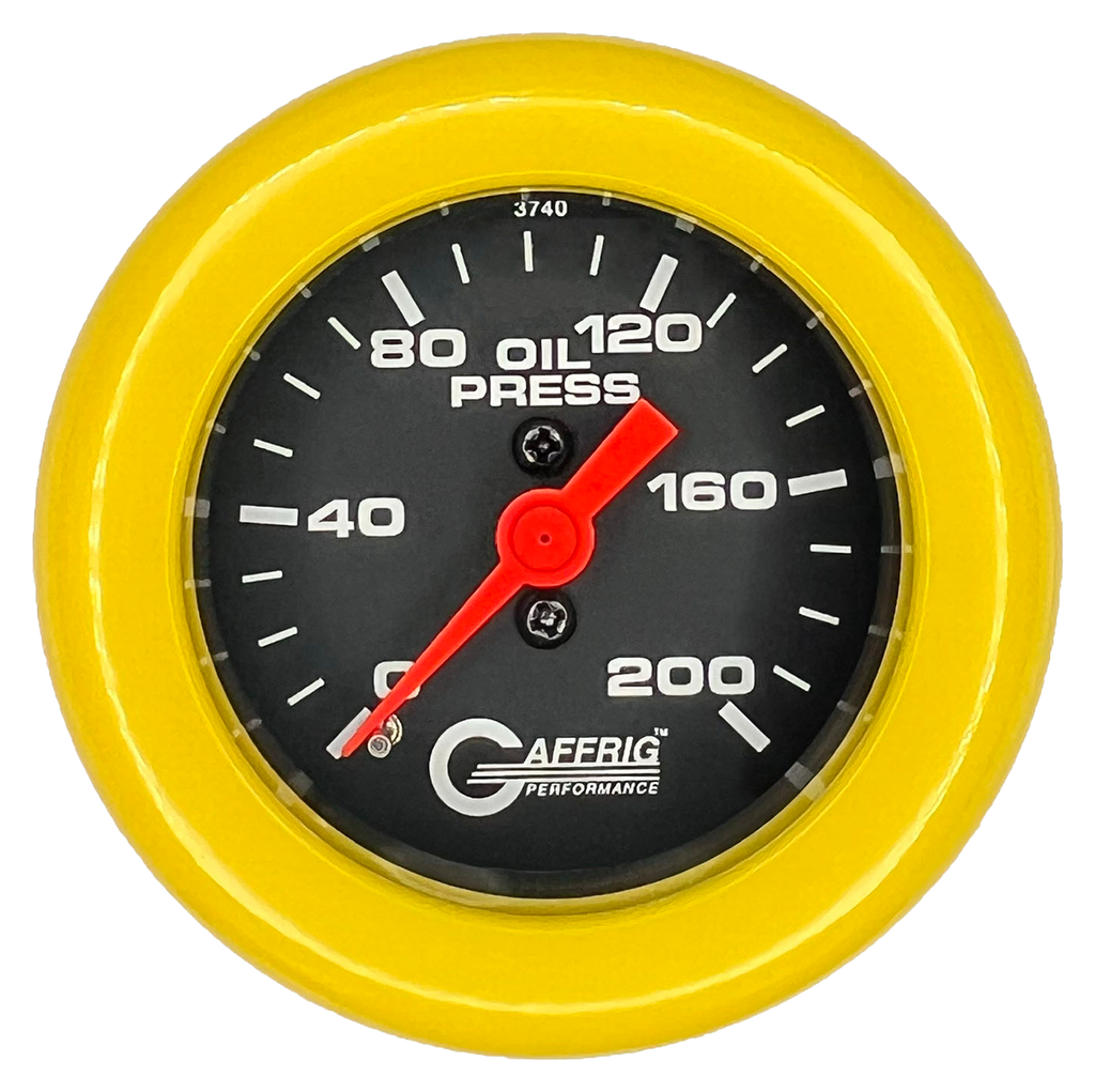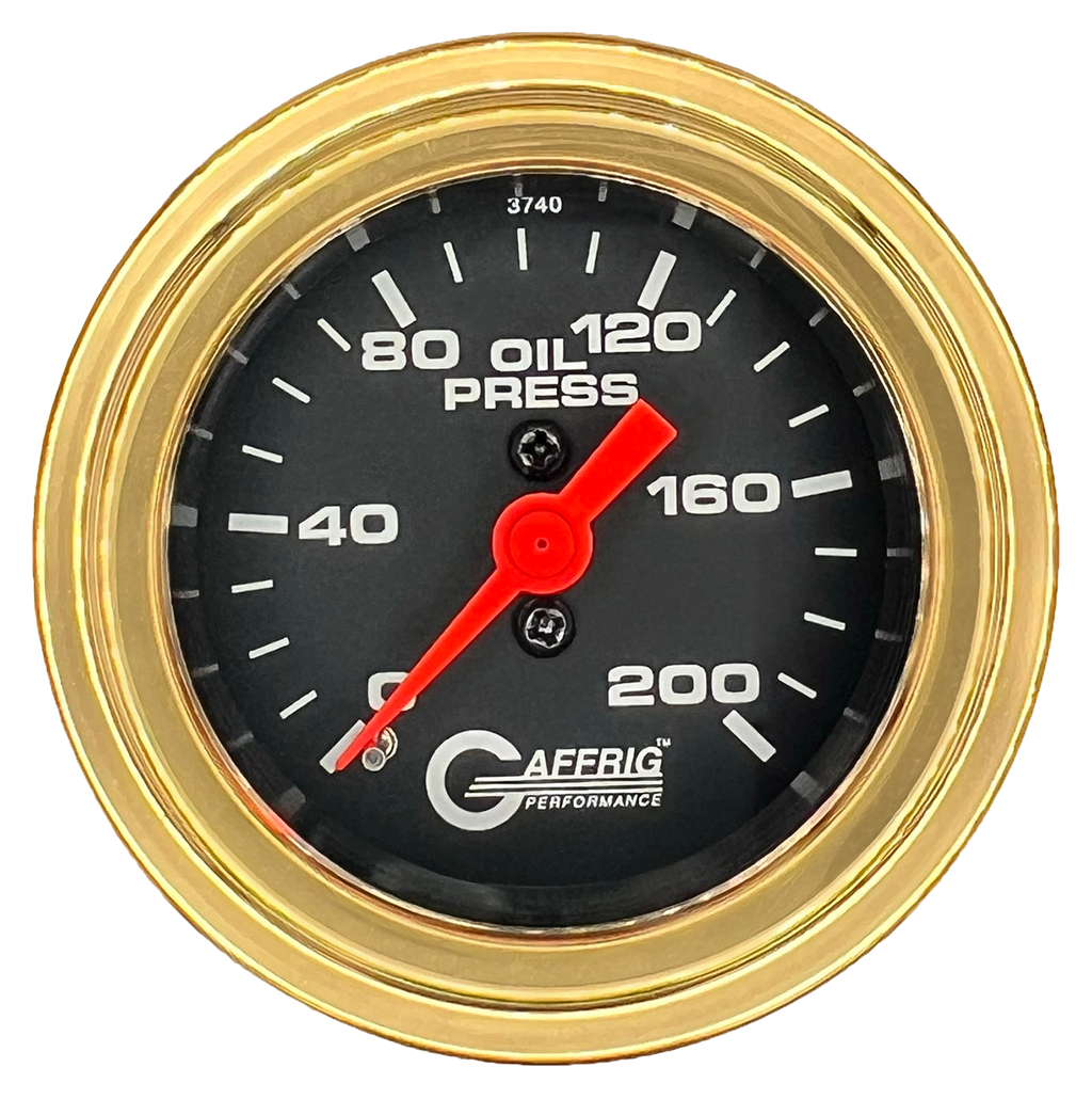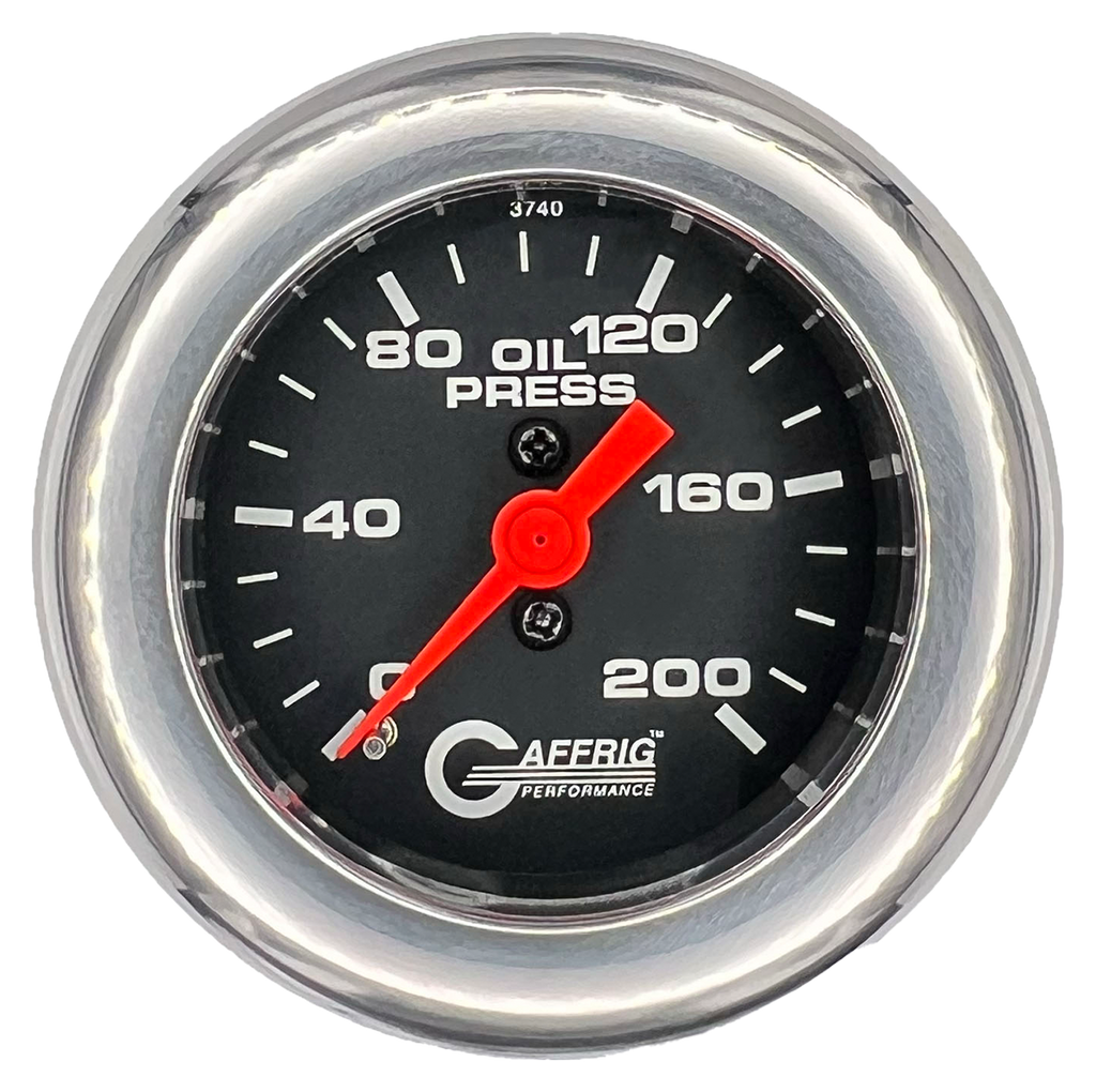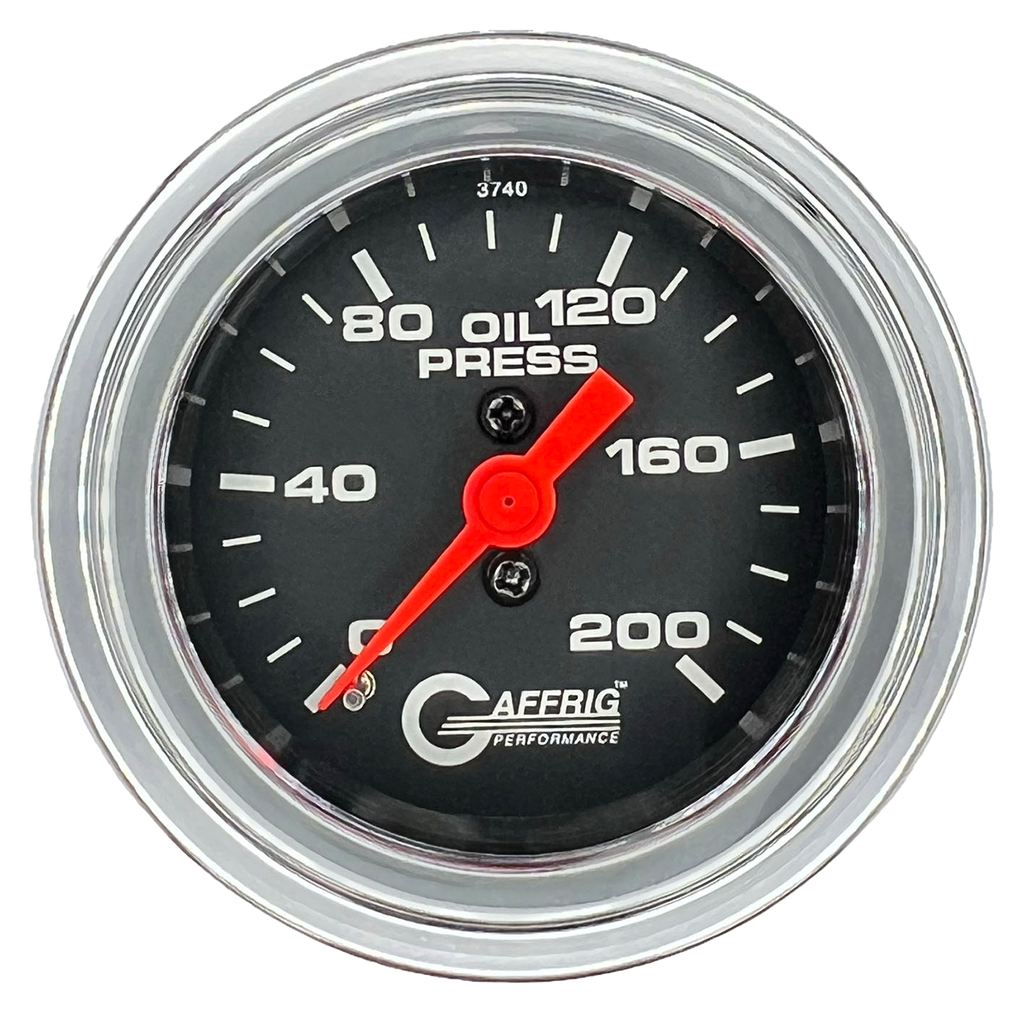 Protect your engine and optimize its performance with the Gaffrig Performance 2-Inch Mechanical Oil Pressure Gauge. Designed for high-pressure systems, this gauge delivers accurate readings from 0 to 200 PSI, making it ideal for performance engines, heavy-duty applications, and demanding environments. Built for reliability and durability, it provides the critical data you need to keep your engine running smoothly under any conditions.