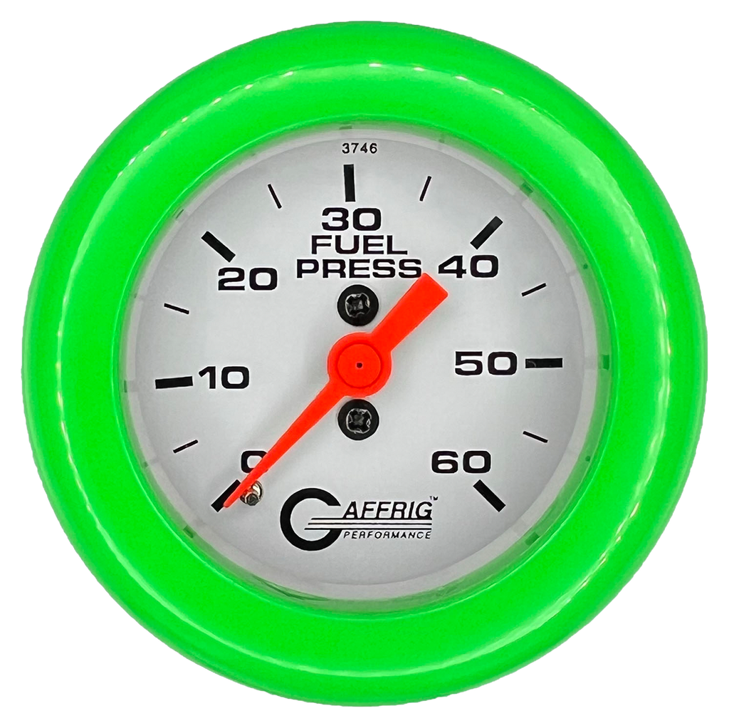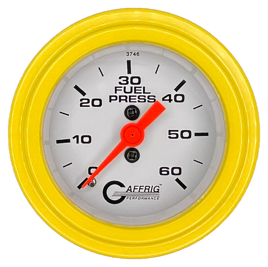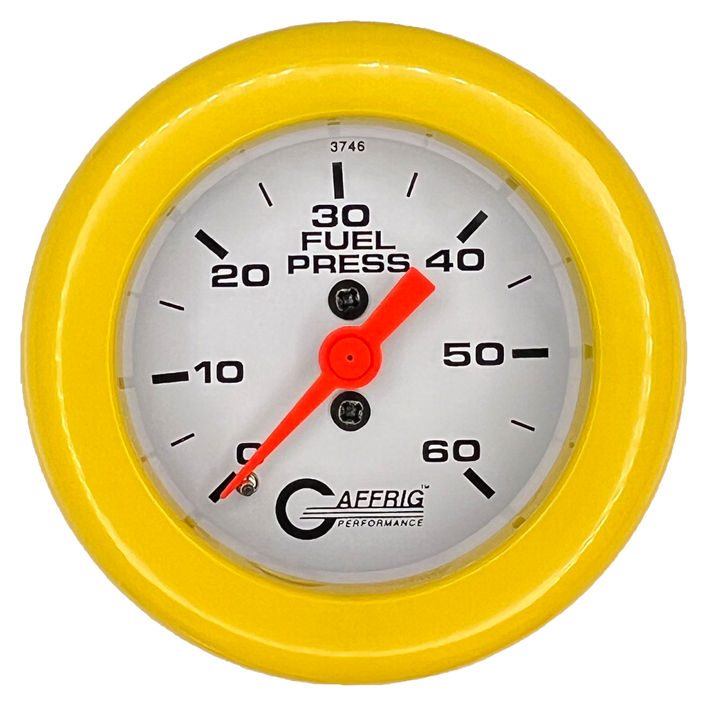 Monitor your fuel system with confidence using the Gaffrig Performance 2-Inch Mechanical Fuel Pressure Gauge. Engineered for high-pressure systems, this gauge delivers accurate readings from 0 to 60 PSI, making it ideal for fuel-injected engines and performance applications. Built with precision and durability in mind, this gauge ensures your engine gets the consistent fuel delivery it needs for peak performance and reliability.